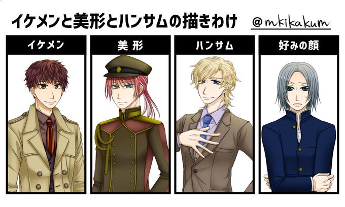 イケメンと美形とハンサムの描きわけのtwitterイラスト検索結果